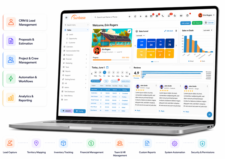 Sunbase is an all-in-one contractor management software platform designed to help solar installers, roofing contractors, and construction companies manage their entire business in one place. From capturing leads and creating proposals to managing projects, coordinating teams, and analyzing performance, Sunbase replaces multiple disconnected tools with a single unified system built for contractor operations.