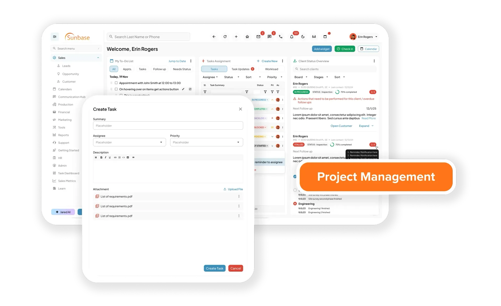 Sunbase helps contractor businesses manage their entire sales workflow, from initial lead capture to closing deals and scheduling projects.